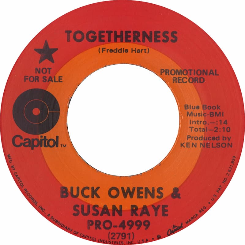 Within their shared catalogue, “Togetherness” fits alongside other Buck Owens–Susan Raye collaborations such as “We’re Gonna Get Together” and “The Great White Horse.” These records were an important part of how Owens presented himself at the time: not just as a solo star, but as the anchor of a broader Bakersfield stable that included Raye and other Buckaroos. Radio programmers treated the duets as distinct entries, and “Togetherness” earned its own country-chart run, giving the pair another presence on playlists alongside Owens’ solo singles.
