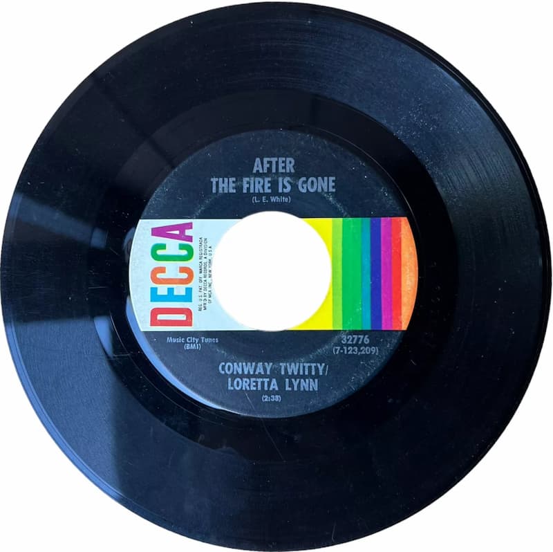 They found their first in an L. E. White composition called “After the Fire Is Gone.” White was working for Twitty’s publishing company and he showed the song to his employer soon after writing it. Conway was initially unimpressed. He didn’t pay much attention to “After the Fire Is Gone” for about a year, then one night, at 2:00 in the morning, Twitty called White at home and said, “Boy, I’ve found this song that would be a big hit for Loretta and me,” apparently not realizing it was the same song L. E. had showed him earlier!